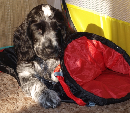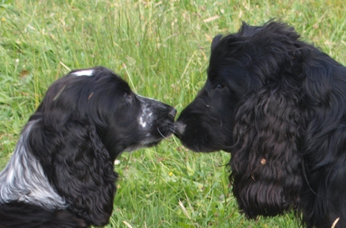 Hier präsentieren wir unsere beiden Cockerspaniels Robbi und Jenny. Robbi ist 2002 geboren und kam 2003 aus einem Tierheim zu uns. Mit ihm besuchte ich die Rockergruppe eines Hundesportvereines. So begann mein Interesse am Hundesport. Als Mitglied dieses Vereins legte ich mit Robbi 2005 die Begleithundeprüfung ab. Es folgten dann 2006 die VPG-Fährtenprüfung 1, weitere Begleithundeprüfungen 2007 und 2008, die VPG-Fährtenprüfung 2 und 3 in 2009. Im vergangenen Jahr (2010) legten wir die große Fährtenprüfung I erfolgreich ab. Und in diesem Jahr (2011) packen wir die große Fährtenprüfung II an und hoffen auf einen erfolgreichen Abschluss! Denn dieses Jahr ist Robbis letztes Prüfungsjahr. Er ist 9 Jahre alt geworden und wird ab nächstem Jahr nicht mehr an Prüfungen teilnehmen. Er wird aber weiterhin Unterordnungsübungen und Agility, was uns sehr viel Spaß macht, ausführen. Unsere kleine Jenny, (eigentlich heißt sie Dijonay from Castle of Imagination) kam am 15.01.2011 als kleiner Welpe in unser Haus. Sie bereitet uns sehr viel Freude und ist auch sehr gelehrig. Natürlich schaut sie sich auch allen möglichen Blödsinn von Robbi ab. Damit müssen wir leben. Sie nimmt schon mit den Vereinshunden am Kreistraining teil und macht das einfach super! Durch häufigen Umgang mit anderen Hunden in der Welpengruppe, durch Ausflüge und Besuche bei Bekannten und Freunden mit und ohne Hunden ist sie sehr gut sozialisiert. Ein kleines Problem bereiten ihr noch recht kleine Kinder. Eigentlich will sie nur mit ihnen spielen, aber sie verstehen das noch nicht und beginnen zu weinen, wenn Jenny sie lautstark zum Spiel auffordert. | ||||||||||||||||||||||||||||||||||||||||||||||||||||||||||||||||||||||||||||||||||||||||||||||||||